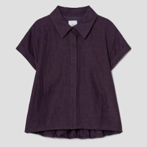 KUHO Linen Blended Collar Neck Short-Sleeved Blouse – Purple