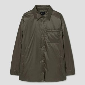Theory Women Polished Nylon Pocket Shirt Puffer - Dark Khaki