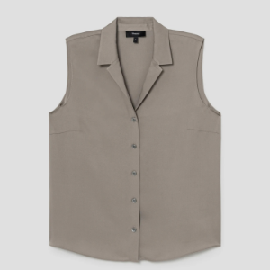 Theory Women Silk Georgette Camp Collar Blouse - Soft Taupe