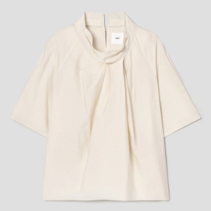 KUHO High-Neck Short-Sleeve Blouse – Ivory