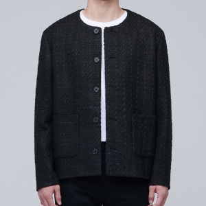 Round Neck Tweed Jacket — Black