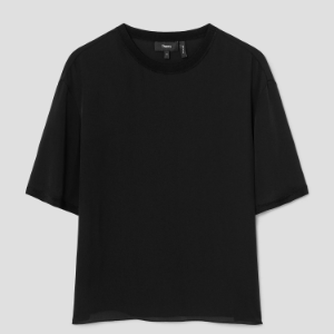 Theory Women Silk Combo Oversized Boxy Tee - Black