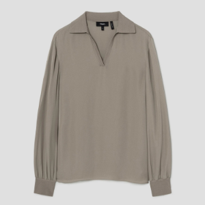 • Theory Women Silk Combo Open Polo Top - Soft Taupe