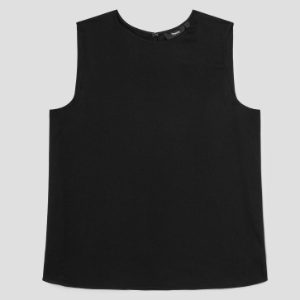 минималистичный силуэт без рукавов, аккуратный округлый вырез, застёжка на крючок сзади