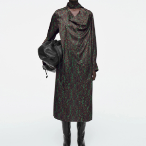 • COS – Scarf Detail Printed Midi Dress Black