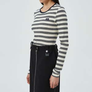 GANNI Striped Soft Cotton Rib Long Sleeve T-Shirt - Sky Captain
