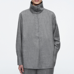 COS Relaxed Funnel Neck Wool Flannel Shirt