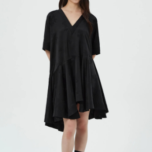 GANNI Fluid Satin Jacquard Oversized Mini Dress - Black