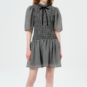 GANNI Sheer Fluid Check Mini Smock Dress - Black