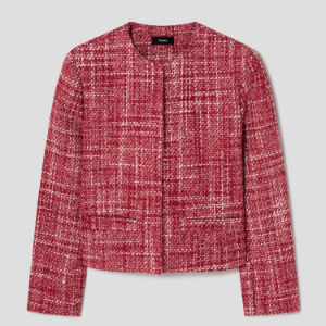 • Theory Women Melange Tweed Pocket Jacket - Red Multi