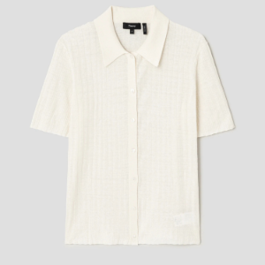 8 seconds Openwork Collared Short Sleeve Cardigan — Light Grey