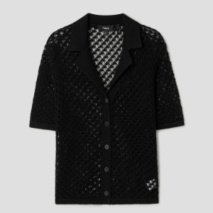 • Theory Women Sheen Cotton Camp Shirt Cardigan - Black