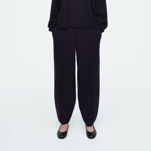 • COS Merino Wool Barrel Leg Trousers – Navy