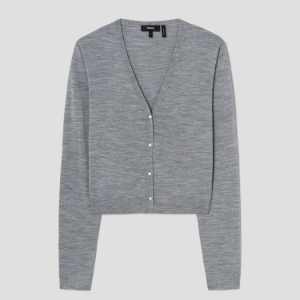 Theory Women Regal Wool Slim Crop Cardigan - Cool Heather Grey