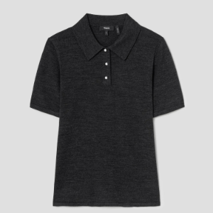 Theory Women Regal Wool Easy Polo Pullover - New Pestle Melange