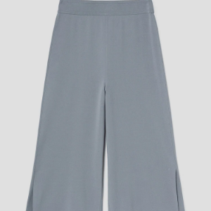 KUHO Cotton Blend Crop Wide Knit Pants - Grey
