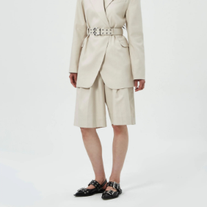 GANNI Cotton Melange Tailoring Wide Shorts – Ivory