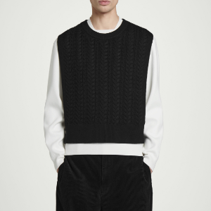 COS Cable Knit Wool Hybrid Vest – Black