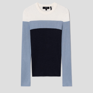 Theory Women Washable Silk Stripe Pullover - Denim Melange Multi