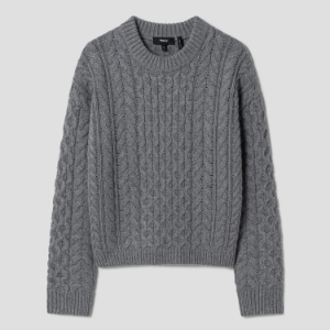 • Theory Women Felted Wool Cash Aran Cable Pullover - Ash Melange