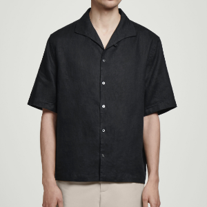 8 seconds Washing Texture Denim Short Sleeve Shirt — Black