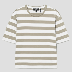 • Theory Women Wide Stripe Boxy Crewneck Tee - Taupe Multi