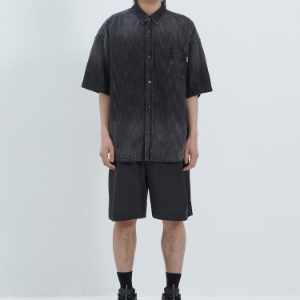 JUUN.J (Унисекс) Рубашка Denim Loose-Fit Short-Sleeve Shirt – Black