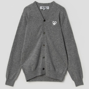 PLAY COMME DES GARÇONS (Unisex) White Heart Wappen Cardigan – Light Grey