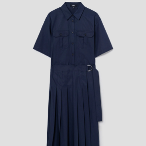 • Theory Women Sleek Poplin Pleats Wrap Dress - Nocturne Navy