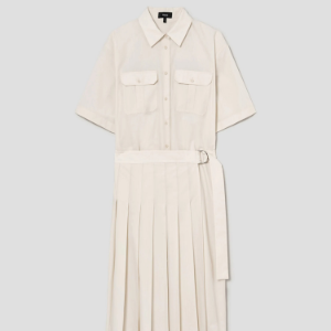 • Theory Women Sleek Poplin Pleats Wrap Dress - Eggshell