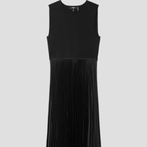 • Theory Women Satin Texture Combo Pleated Dresss - Black