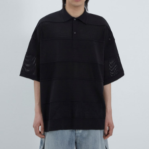 JUUN.J Mixed-Structure Sheer Terry Polo Knit – Black