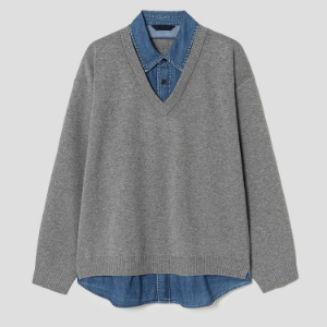 JUUN.J [CORE] Denim Panel Sweater – Light Grey