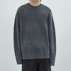 JUUN.J Mixed Texture Stripe Dyed Pullover Sweater – Ash
