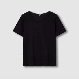 JAJU Cotton Twisted Yarn U-Neck Short Sleeve T-Shirt – Black