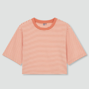 • JAJU Cotton Stripe Half-Sleeve Crop T-Shirt – Pink