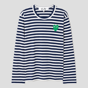 PLAY COMME des GARÇONS (Unisex) Green Heart Wappen Striped Long Sleeve T-Shirt – Navy