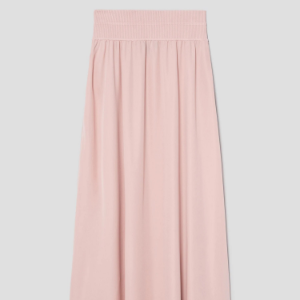 • Theory Women Silk Combo Rib Waistband Volume Skirt - Pink Sand