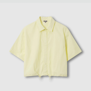 JAJU Square-Texture Short Sleeve String Shirt – Yellow