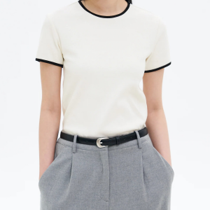 8 seconds Ribbed Contrast-trim T-shirt — Ivory