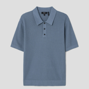 • Theory Men Tactile Cotton Mesh Polo Sweater - Dark Rainstorm