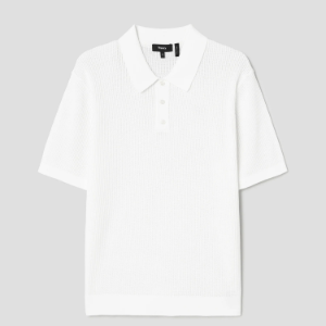 • Theory Men Tactile Cotton Mesh Polo Sweater - White