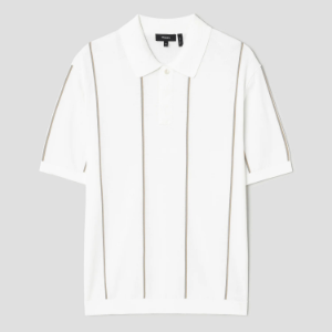 • Theory Men Tactile Cotton Stripe Polo Sweater - White Multi