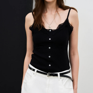 8 seconds Lace Ribbed Tank Top — Black