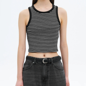 8 seconds Striped Semi-Crop Tank Top – Black
