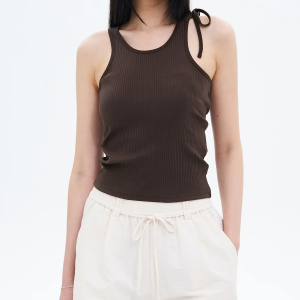 • 8 seconds Ribbon Shoulder Sleeveless T-shirt – Brown
