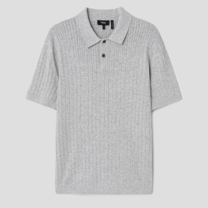 • Theory Men Eco Breach Cable Polo Sweater - Light Grey Heather