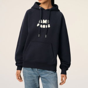 • ami (Unisex) Ami Paris Croche Hoodie – Navy Blue