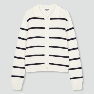 • JAJU Stripe Collar Cardigan – Light Navy