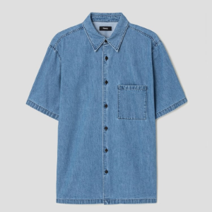 • Theory Men Summer Denim Noll Short Sleeve Shirt - Light Wash